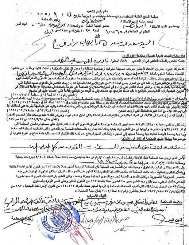 قال أشرف عبد الفتاح أبو عجيلة، المحامي، بأن الحكم الصادر بجلسة ٢٤ / ٩ / ٢٠٢٥ من محكمة مدينة نصر الجزئية برئاسة المستشار ( محمد مبارك ) القاضي الجليل ضد رجلي الأعمال ( السيد سعد محمد سعد ، وشريكه إيهاب مراد فراج ) مالكي شركة كايرو كونسلت للتنمية العقارية ( عن مشروعها الوحيد - سرايات القطامية / مكاني ) ، في القضية رقم ١٠٧٦٥ لسنة ٢٠٢٥ جنح أول م . نصر بالحبس لمدة سنتين مع الشغل وكفالة 200 ألف جنيه مع تعويض مؤقت ٤٠٠٠٠جم في جنحة التراخي في تسليم وحدة سكنية ، يُعد انتصارًا جديدًا للعدالة، وتجسيدًا حقيقيًا لدور القضاء المصري في حماية حقوق المواطنين واستعادة الثقة في السوق العقاري.
