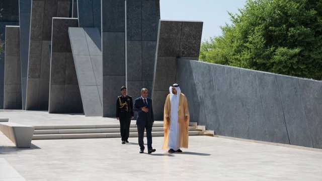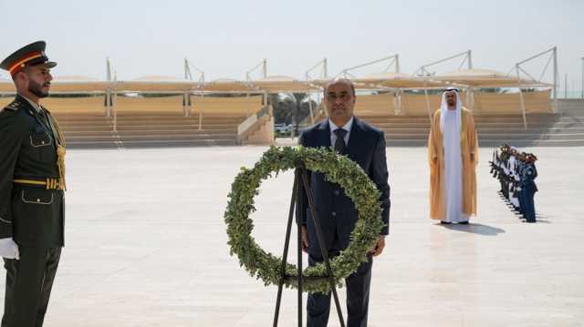 واستعرض معالي رئيس الوزراء اليمني، يرافقه سموّ الشيخ ذياب بن محمد بن زايد آل نهيان، حرس الشرف الذي اصطفَّ لتحيته، ثمَّ وضع إكليلاً من الزهور أمام نصب الشهيد.