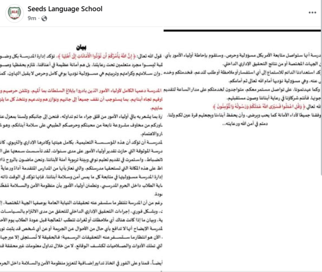 زودنا الإشراف ومنتظرين نتيجة التحقيقات | بيان جديد من مدرسة السلام بعد الاعتداء على تلاميذها