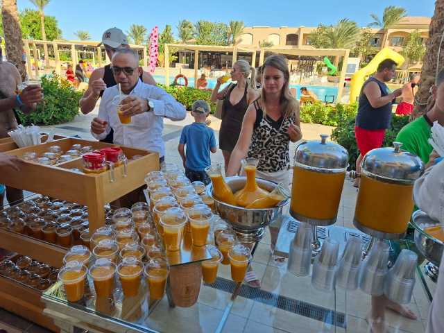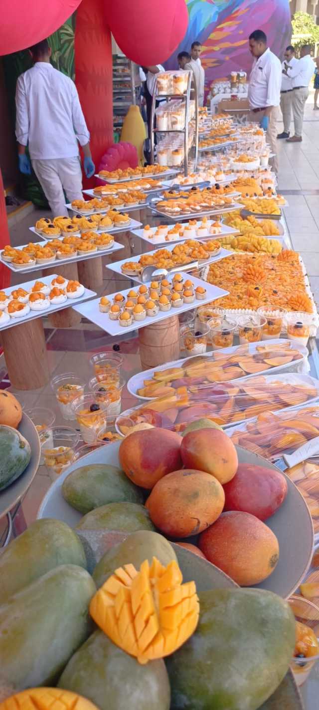 وقال الشيف محمد عباس، الشيف العمومي لإحدى الفنادق بالغردقة، إن مهرجان اليوم كان لفاكهة المانجو الأكثر جذبا للسياح بالغردقة بمشاركة 18 شيف وطن من المانجو، مشيرا إلى تقديم عصائر المانجو وتورت المانجو والكنافة بالمانجو وقطع المانجو الجذابة للزوار.