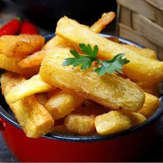 ـ تقطيع البطاطس: تُغسل البطاطس وتُقشّر وتُقطّع إلى أصابع متوسطة الحجم.