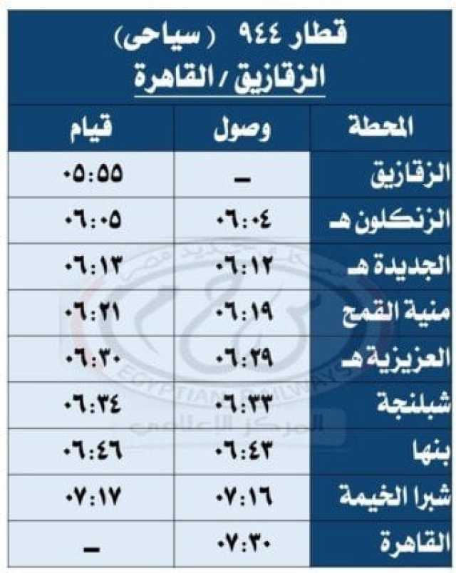 تأتي هذه الخطوة في إطار سعي الهيئة القومية لسكك حديد مصر للعمل على راحة جمهور الركاب وتلبية لرغباتهم، حيث أعلنت الهيئة القومية لسكك حديد مصر عن وقوف قطاري 957 - 944 القاهرة / الزقازيق سياحي وبالعكس بمحطة الجديدة بمركز منيا القمح بمحافظة الشرقية.