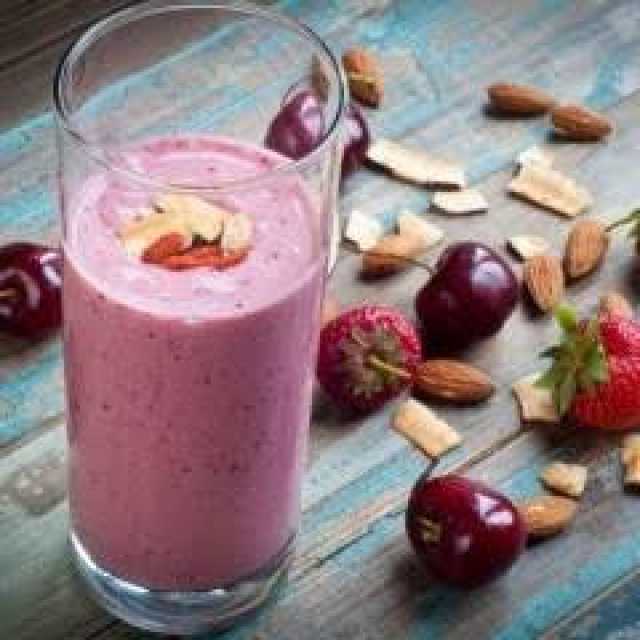 ـ يُخلط عصير الرمان مع التوت البري والتوت الأسود والزبادي والكرز في الخلاط.