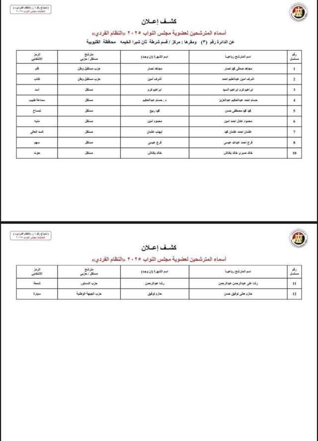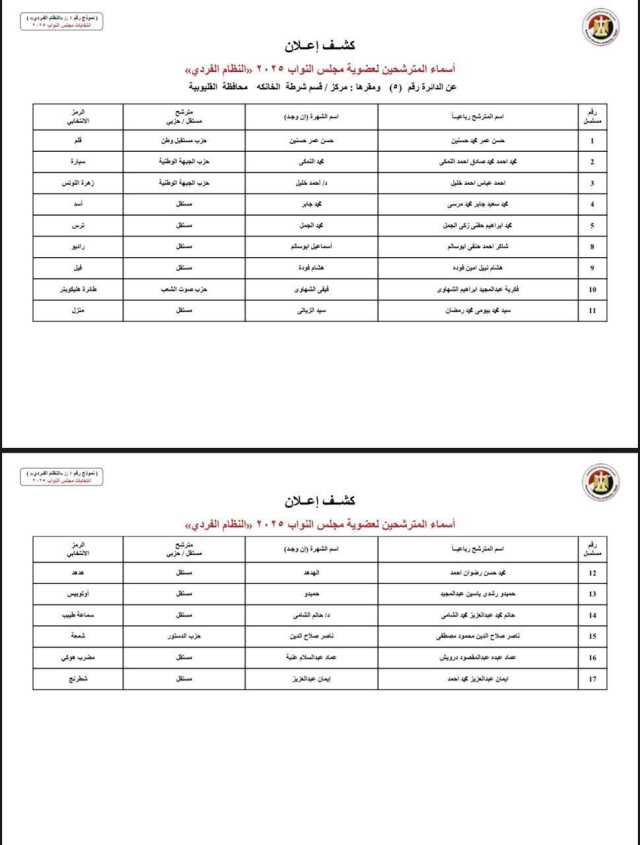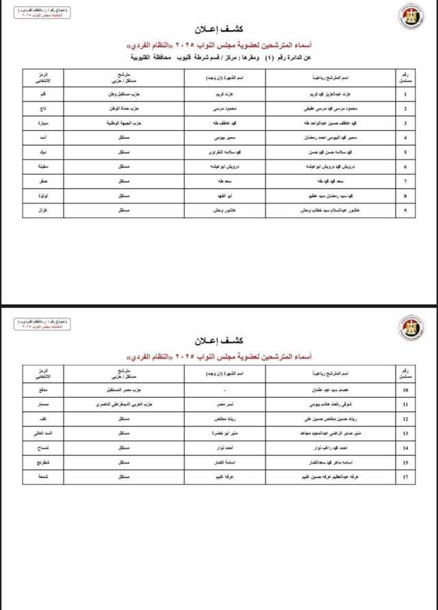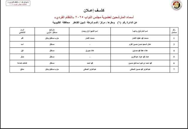ننشر أسماء المرشحين على دوائر محافظة القليوبية بـ انتخابات مجلس النواب