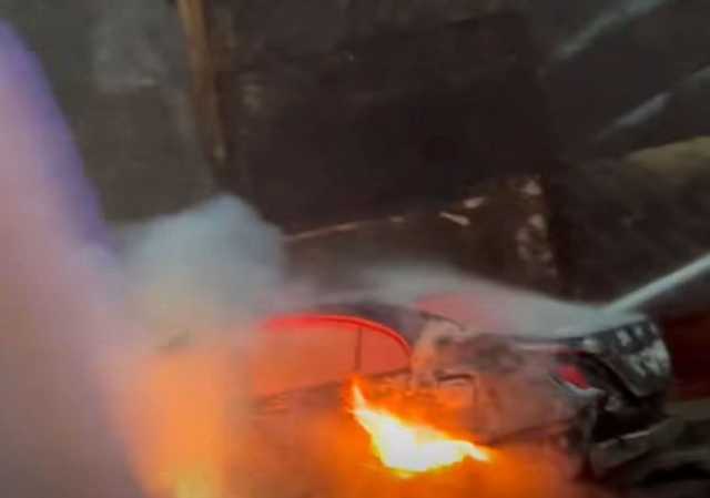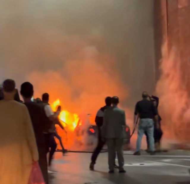 اشتعال ذاتي.. كواليس احتراق سيارة أمام المتحف المصري الكبير| صور