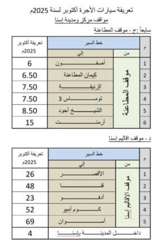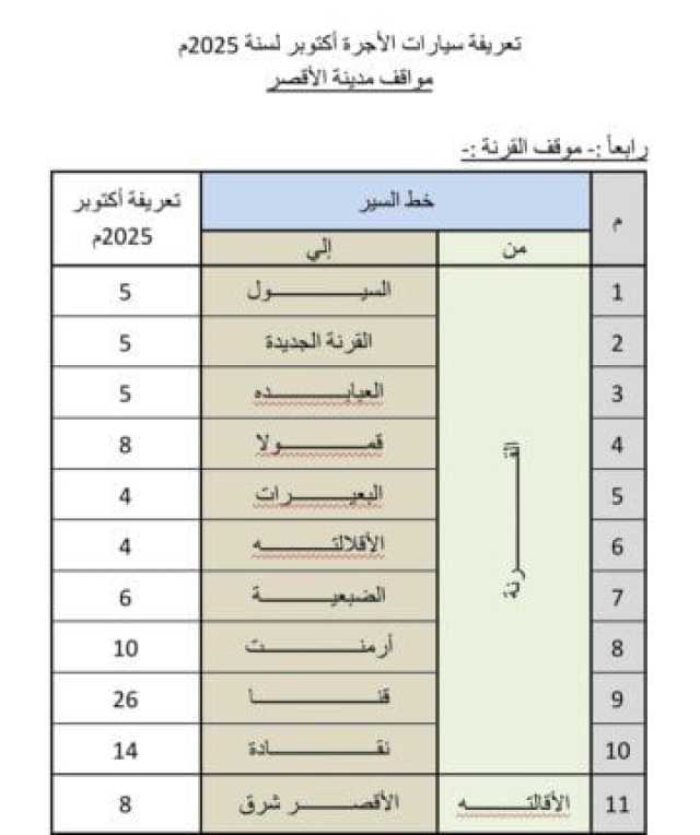 بزيادة 15%.. اعرف التعريفة الجديدة لأسعار الركوب بمحافظة الأقصر