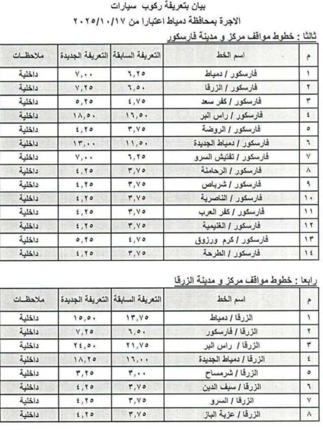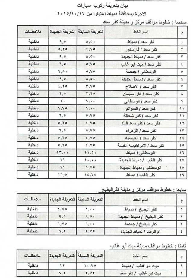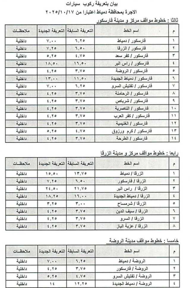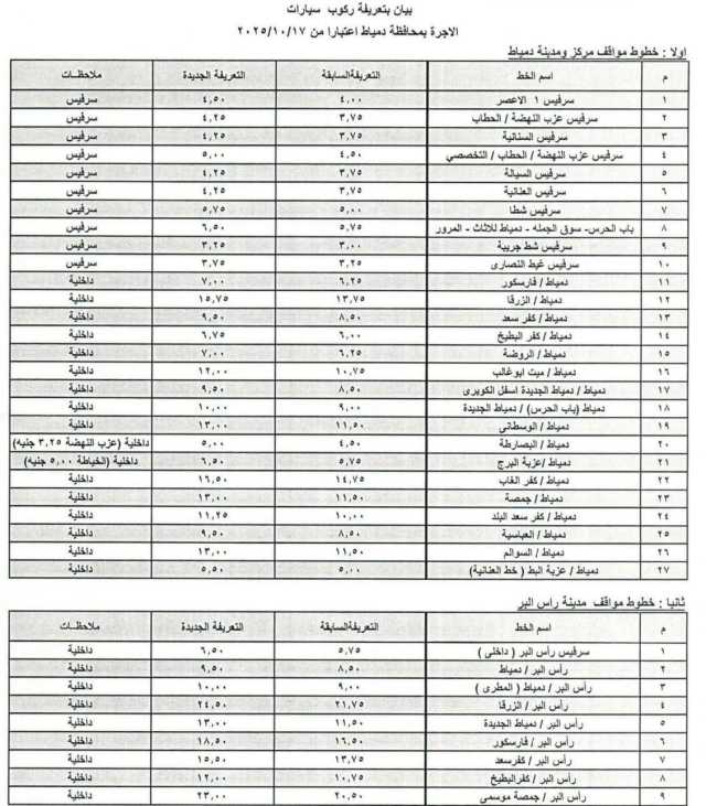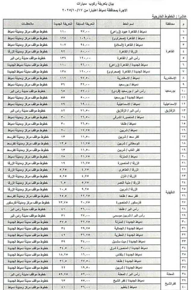 محافظ دمياط يعتمد تعريفة الركوب الجديدة