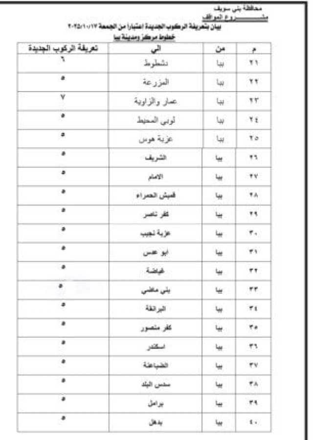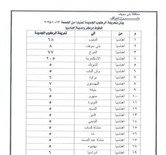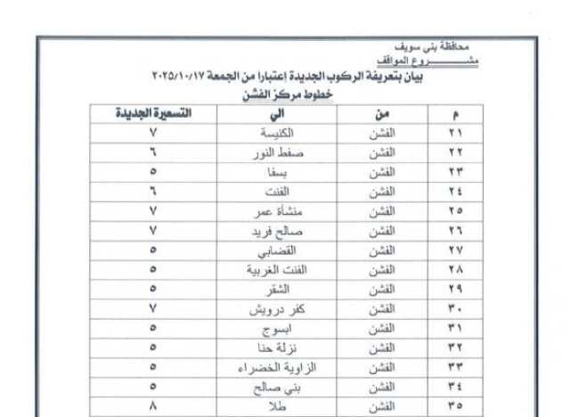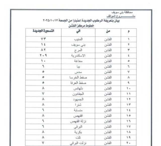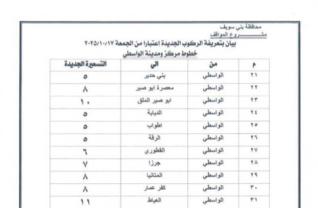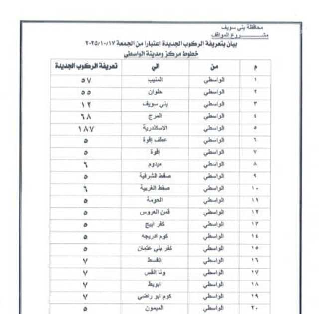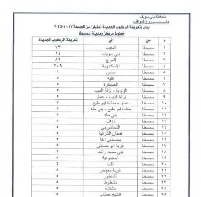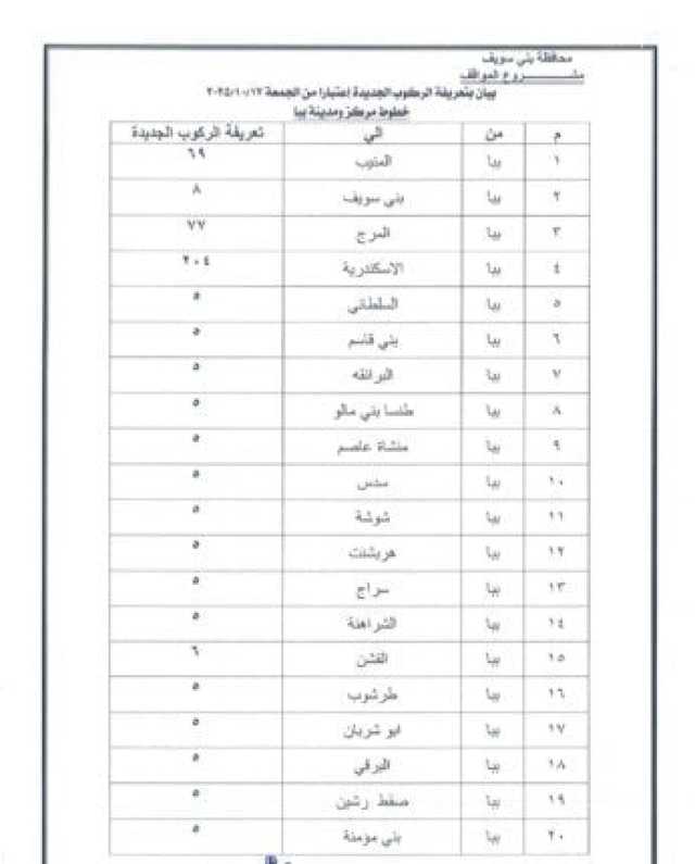 ننشر التعريفة الجديدة للمواصلات في بني سويف بعد تحريك أسعار المنتجات البترولية