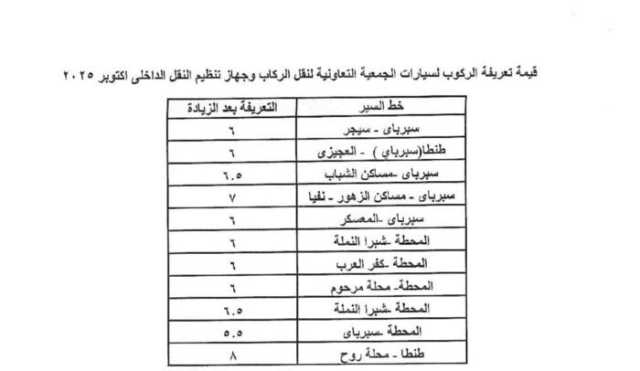 بعد قرار لجنة التسعير التلقائي.. ننشر تعريفة الركوب الجديدة بمحافظة الغربية
