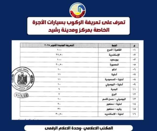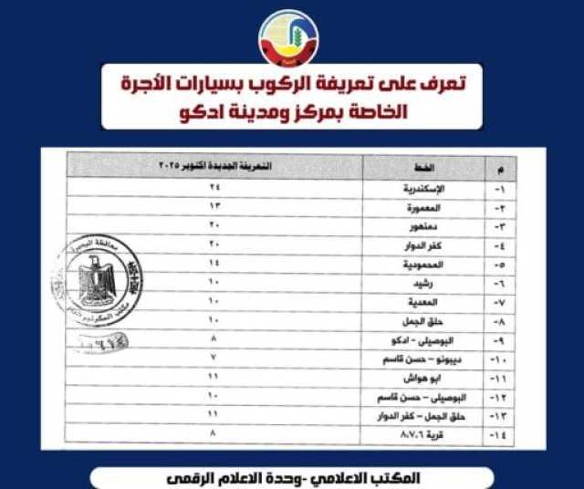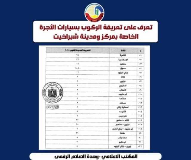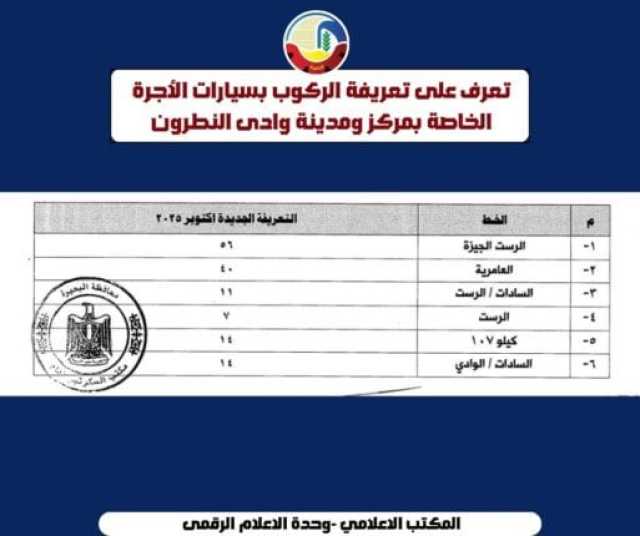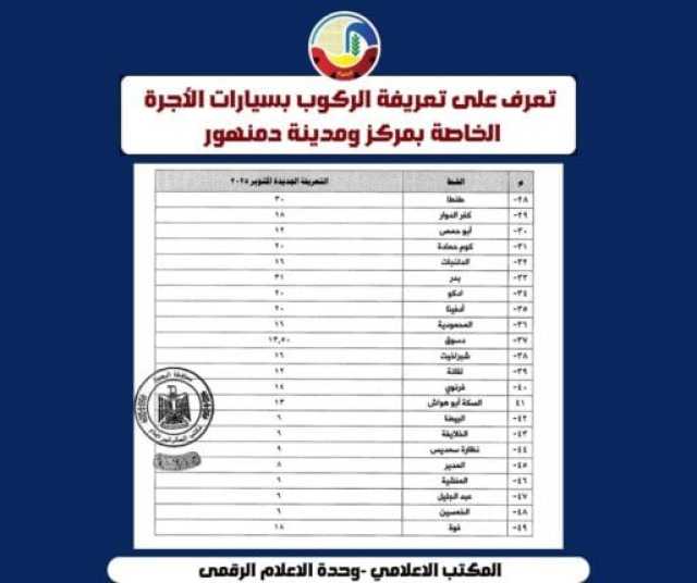 كلمات دلالية: البحيرة محافظة البحيرة تعريفة الركوب أسعار البنزين