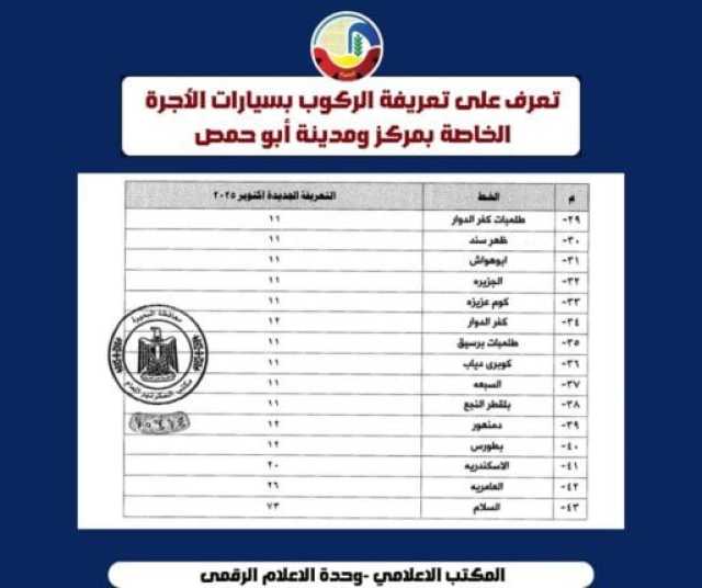 ننشر تعريفة الركوب الجديدة للمواصلات بمواقف البحيرة