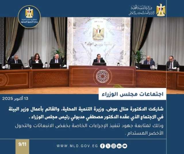 شاركت الدكتورة منال عوض، وزيرة التنمية المحلية والقائم بأعمال وزير البيئة، في الاجتماع الذي عقده الدكتور مصطفى مدبولي، رئيس مجلس الوزراء؛ لمتابعة جهود تنفيذ الإجراءات الخاصة بخفض الانبعاثات والتحول الأخضر المستدام، وأوضح رئيس مجلس الوزراء أن الدولة المصرية حققت إنجازات ملحوظة في ملف التحول الأخضر، الذي يحظى بأولوية كبيرة في ظل التوجهات الدولية لتحقيق التحول الأخضر المُستدام في مُختلف القطاعات.