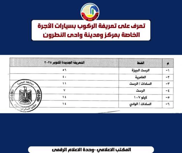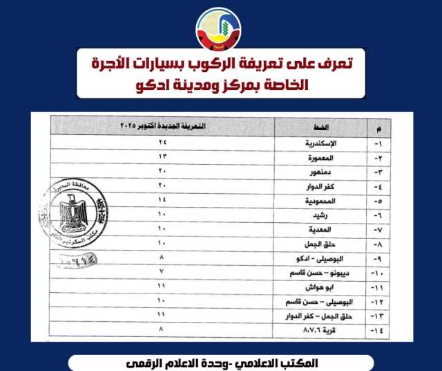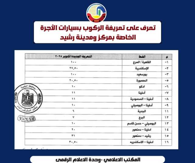 كلمات دلالية: البحيرة محافظة البحيرة تعريفة الركوب ارتفاع سعر البنزين