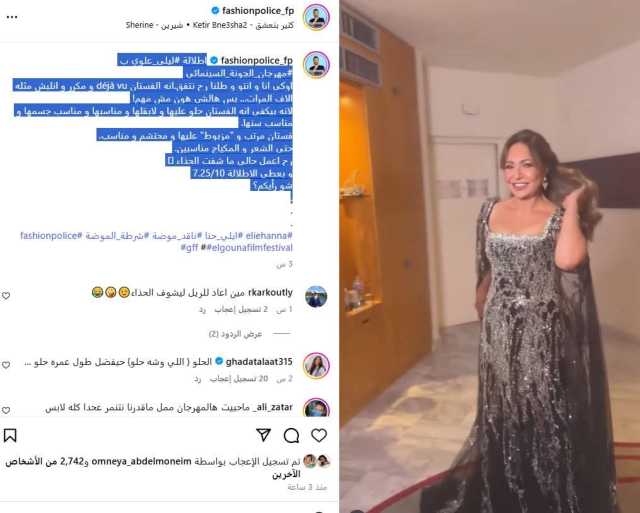 شرطة الموضة تتغزل في فستان ليلى علوي بحفل افتتاح مهرجان الجونةوجاء تعليق إيلي حنا عبر الصفحة الرسمية لشرطة الموضة مؤيد لذوق ليلي علوي، قائلًا: " إطلالة ليلى علوي بمهرجان الجونة السينمائي، اوكي انا و انتو و طلنا رح نتفق.انه الفستان déjà vu و مكرر و انلبش مثله الاف المرات".