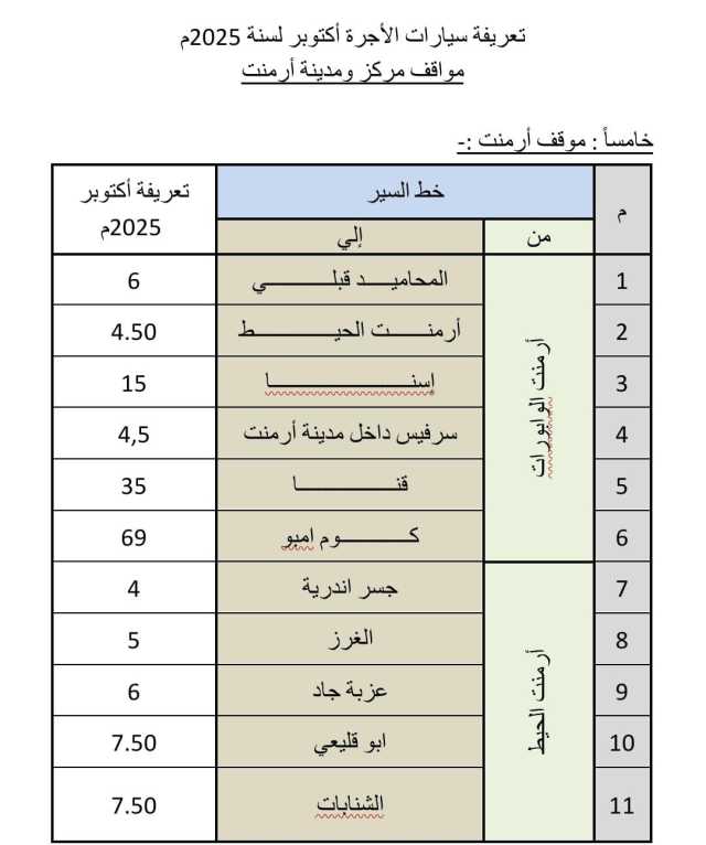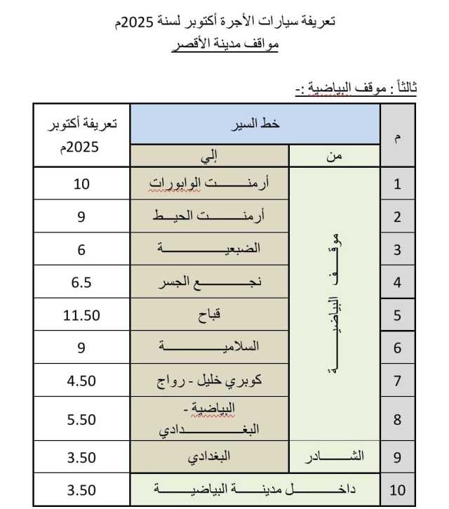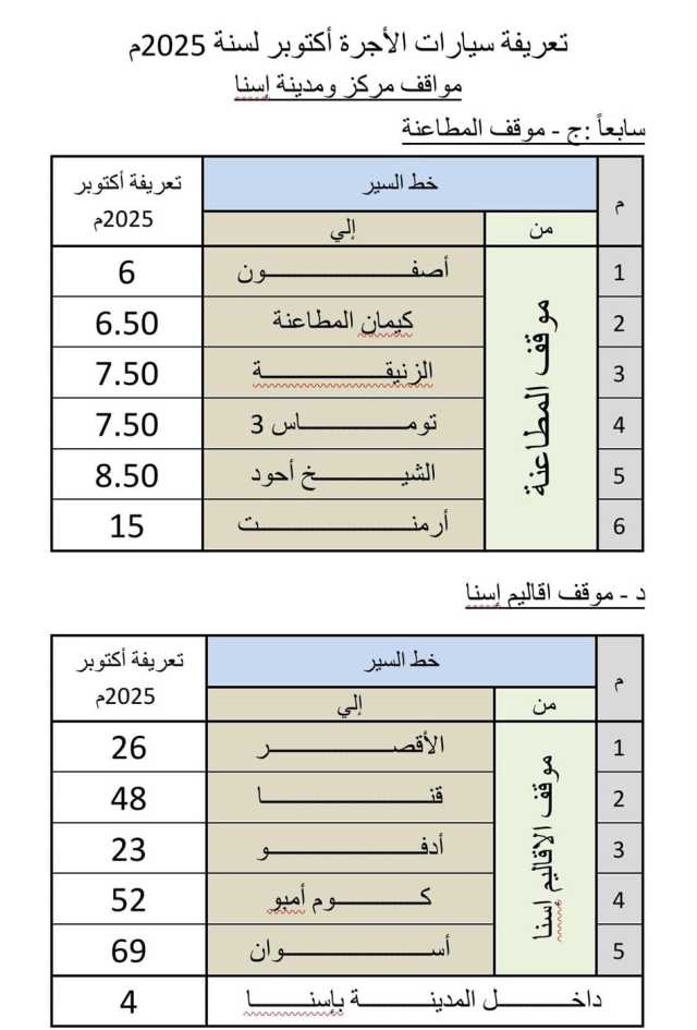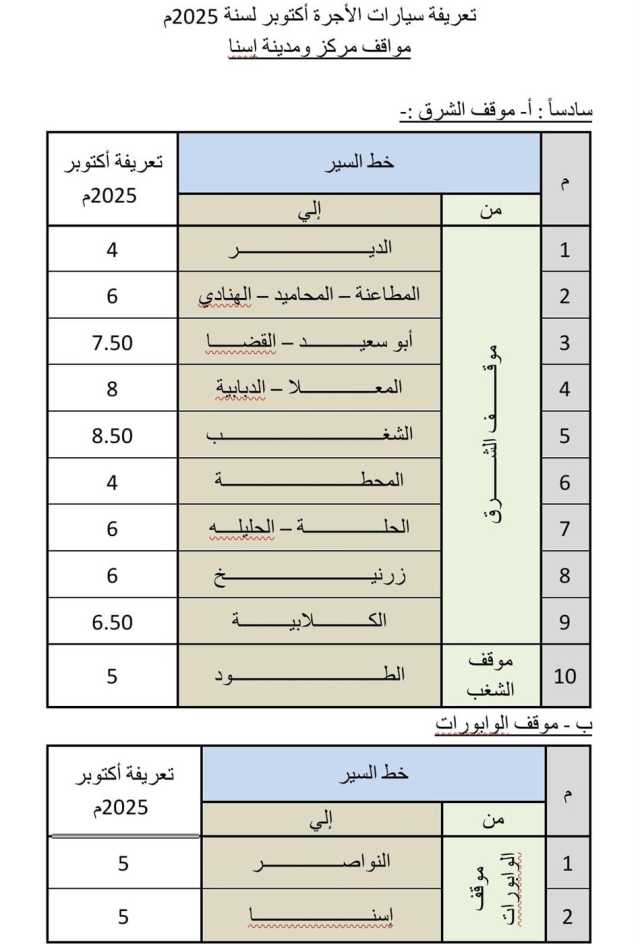كما وجهت اللجنة بسرعة شراء وطباعة الملصقات الخاصة بالتعريفة الجديدة، ليتم وضعها على السيارات وإعلانها للمواطنين بشكل واضح في جميع المواقف لضمان الالتزام بالأسعار المحددة.