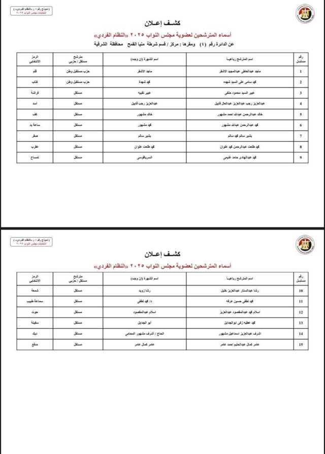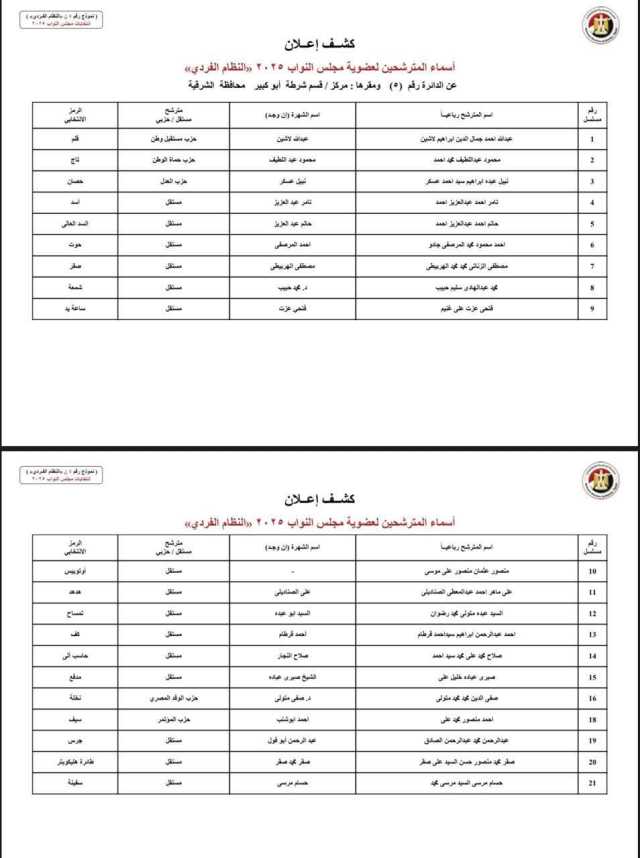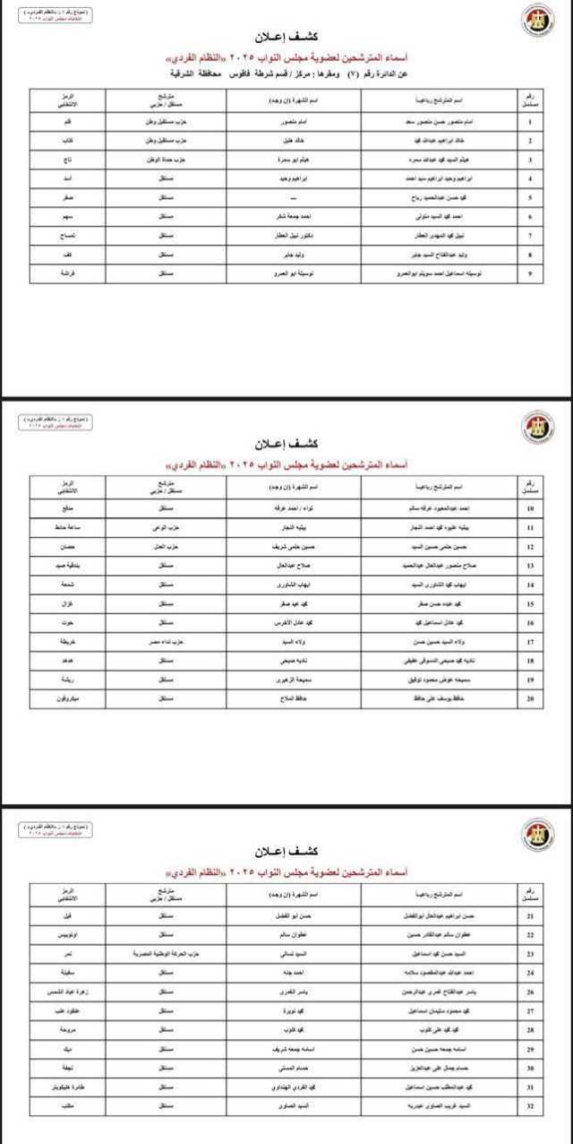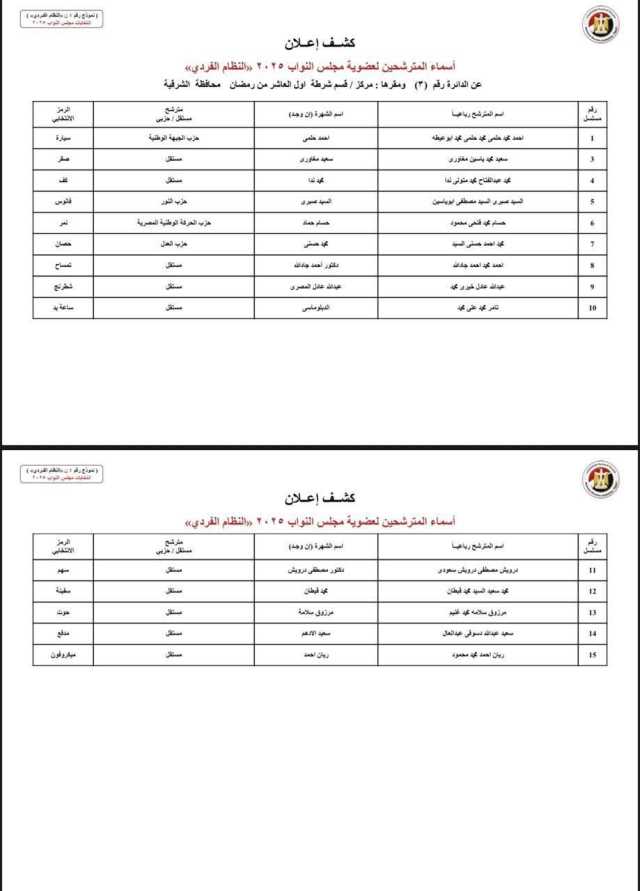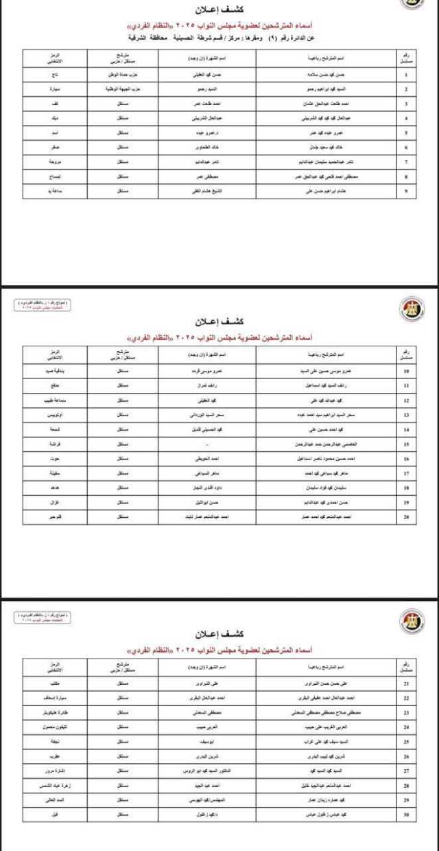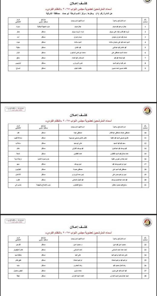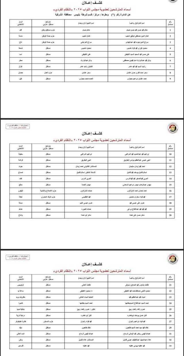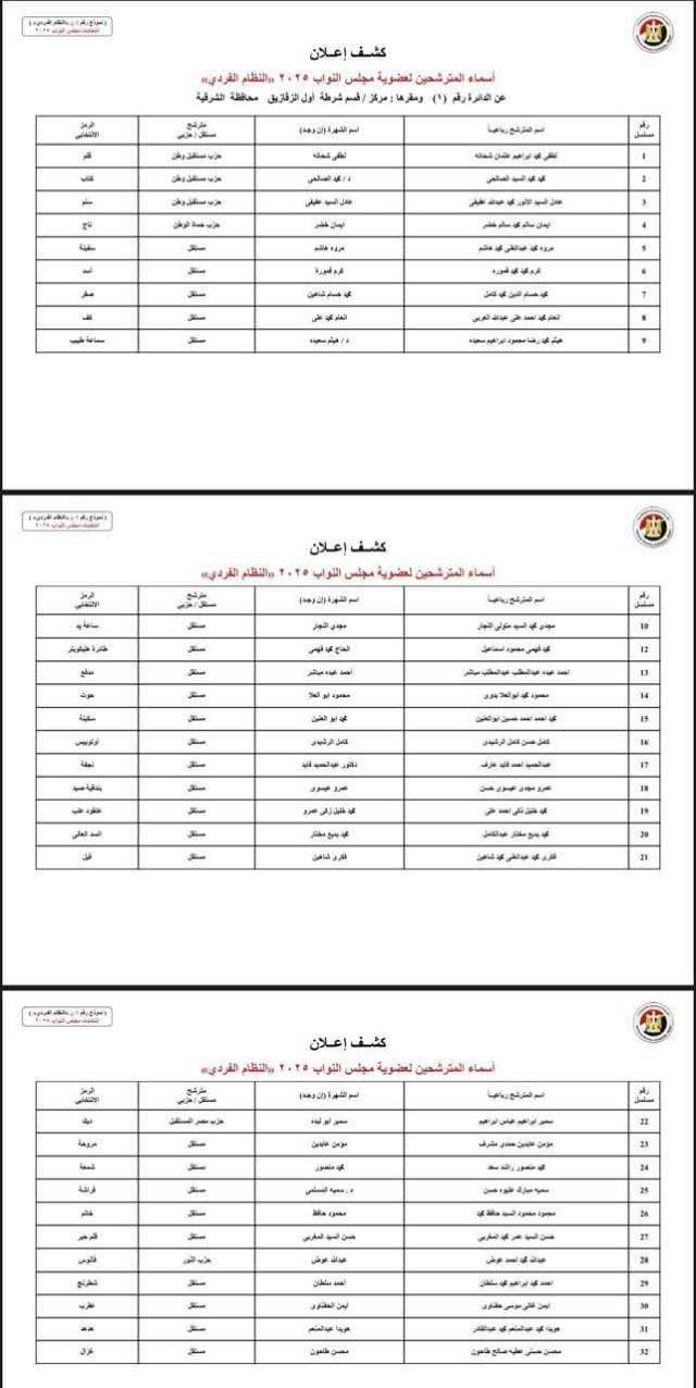 ننشر أسماء المرشحين على دوائر محافظة الشرقية بـ انتخابات مجلس النواب