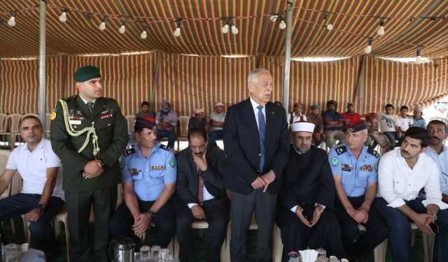 صراحة نيوز-مندوباً عن جلالة الملك عبدالله الثاني، وسمو الأمير الحسين بن عبدالله الثاني، ولي العهد، قدم رئيس الديوان الملكي الهاشمي يوسف حسن العيسوي اليوم الجمعة واجب العزاء إلى عشيرة المحمدين العزازمة بوفاة الأطفال ازدهار (7 أعوام)، وعامر (5 أعوام)، ومحمد (3 أعوام) أبناء جمال عودة نصار المحمدين، الذين قضوا إثر حادثة غرق مؤسفة في قناة الملك عبدالله.