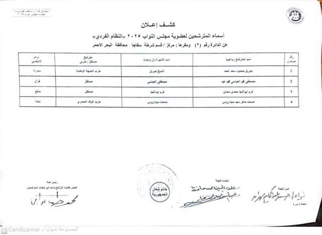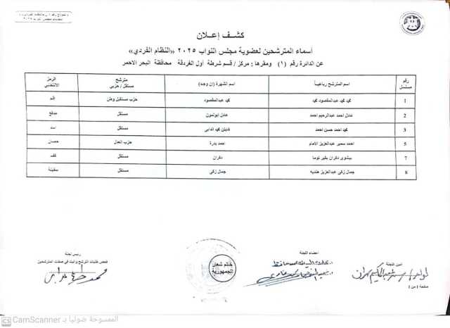 أعلنت اليوم الخميس اللجنة المشرفة على أنتخابات النواب بالبحر الأحمر الكشف المبدئي الخاص بالمرشحين المحتملين الذين تقدموا بأوراقهم للترشح لمجلس النواب 2025