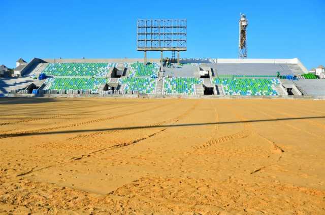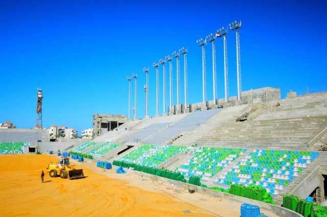 وفي إطار أعمال التجهيز للملعب الرئيسي، جارٍ تنفيذ تأسيس تربة زراعة النجيل الطبيعي، فضلًا عن العمل في فرز وتركيب الشاشات الإلكترونية الحديثة، وتجهيز الموقع لتركيب آخر ثمانية أعمدة إنارة للملعب بما يواكب النظم الفنية المعتمدة في الملاعب الدولية.