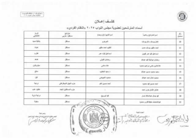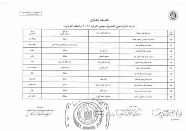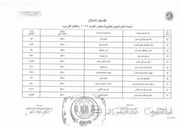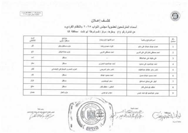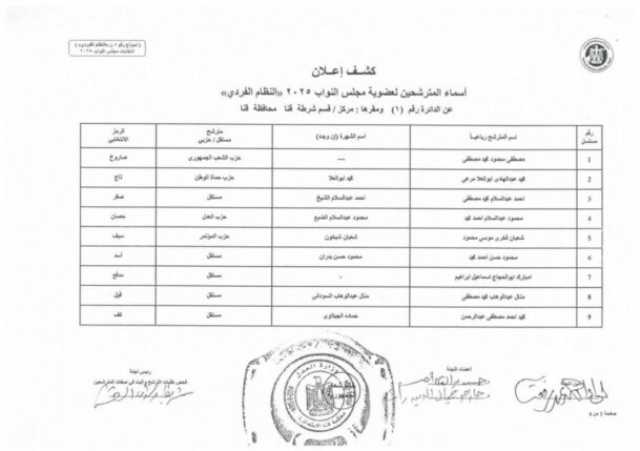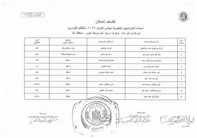 ننشر كشوف مرشحي انتخابات مجلس النواب 2025 بالنظام الفردي في قنا
