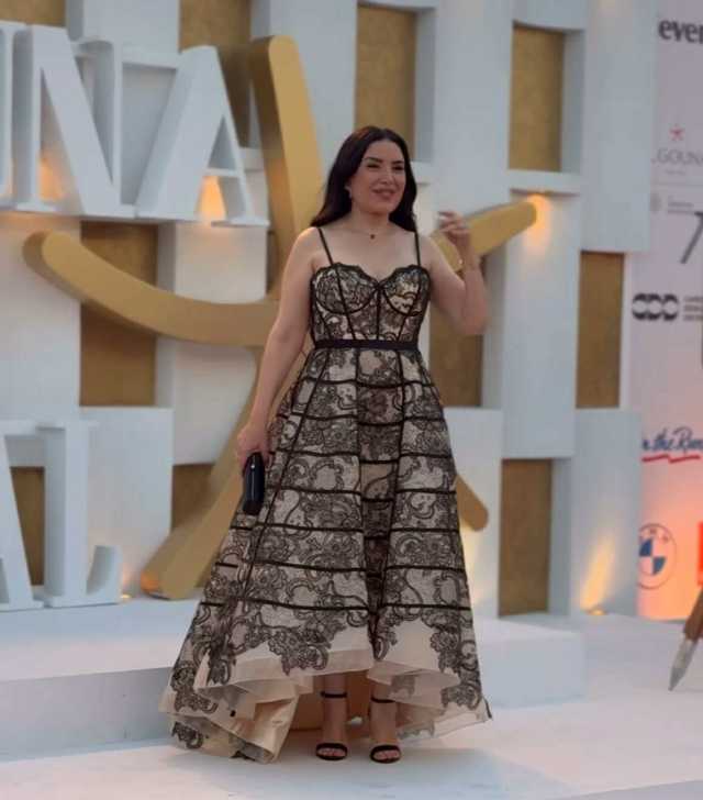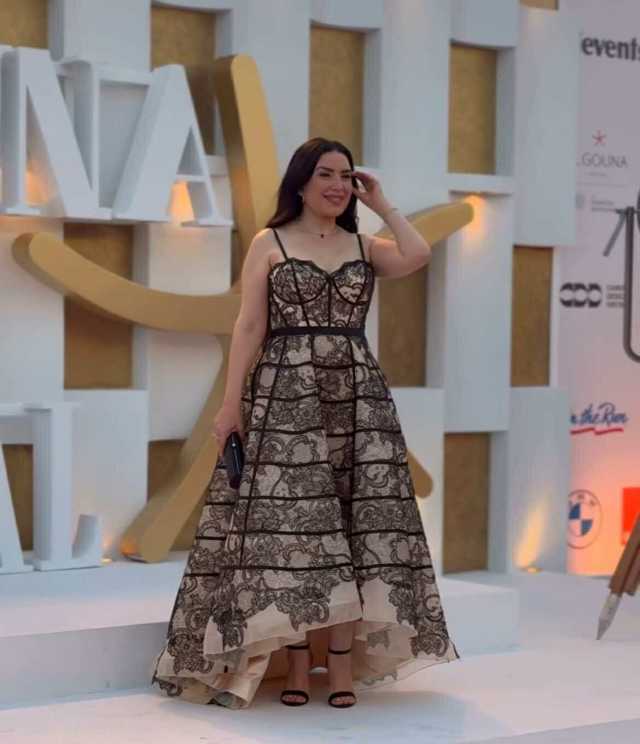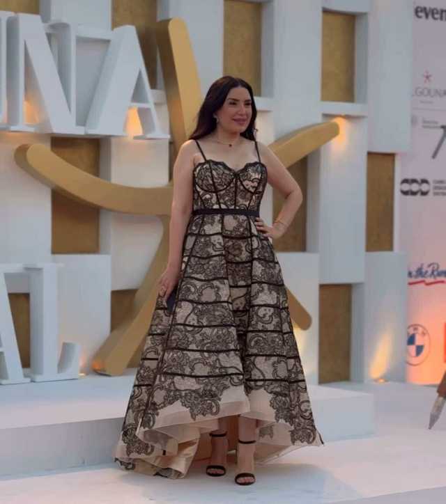 مهرجان الجونة 2025.. عبير صبري تنافس عارضات الأزياء بالدانتيل الفرنساوي