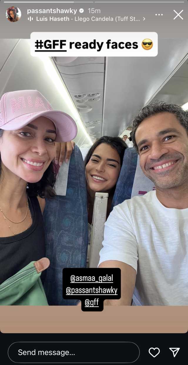 وظهرت بسنت شوقي رفقة الفنانة أسماء جلال من الطائرة استعدادا لمهرجان الجونة السينمائي.
