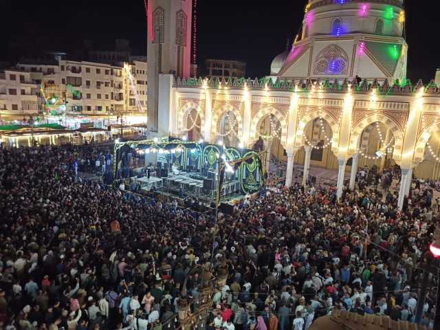 زوار السيد البدوي يتمايلون فرحا بمديح ياسين التهامي بساحة المسجد الأحمدي بطنطا