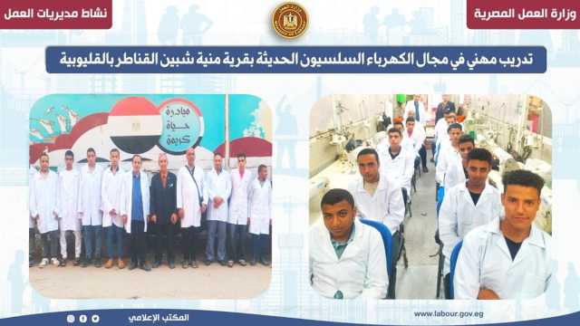 كما نظمت مديرية العمل بالقليوبية تدريبًا مهنيًا جديدًا في مجال الكهرباء والسيليكون الحديثة وصيانة وتركيب كاميرات المراقبة بوحدة التدريب المتنقلة بقرية منية شبين القناطر، تنفيذًا لتوجيهات الوزير محمد جبران، وضمن خطة الوزارة لتأهيل الشباب من الجنسين وإكسابهم المهارات الفنية المطلوبة لسوق العمل داخل منشآت القطاعين الخاص والاستثماري بالمحافظة، بإشراف الإدارة المركزية للتدريب المهني بوزارة العمل.