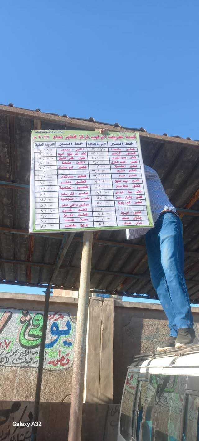 توجيهات محافظ الغربيةوأوضح محافظ الغربية أن التعريفة الجديدة معلنة بشكل واضح في كل موقف، من خلال بنرات ولافتات إرشادية تم تعليقها بمعرفة إدارات المواقف والوحدات المحلية، تتضمن خطوط السير وقيم الأجرة الجديدة، إلى جانب الاستيكرات الرسمية المثبتة على سيارات الأجرة والسرفيس داخل المدن وخارجها، بما يضمن وضوح المعلومات للمواطنين ومنع أي استغلال.