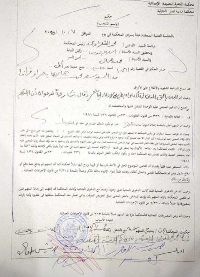 أصدرت محكمة جنح أول مدينة نصر بجلستها المنعقدة في 7 أكتوبر 2025، برئاسة القاضي المستشار محمد الشعراوي، حكمين متتاليين في القضيتين رقمي 10761 و10762 لسنة 2025 جنح أول مدينة نصر ضد ملاك شركة كايرو كونسلت للتنمية العقارية بالقطامية.