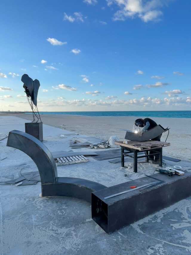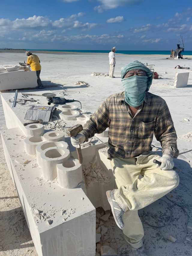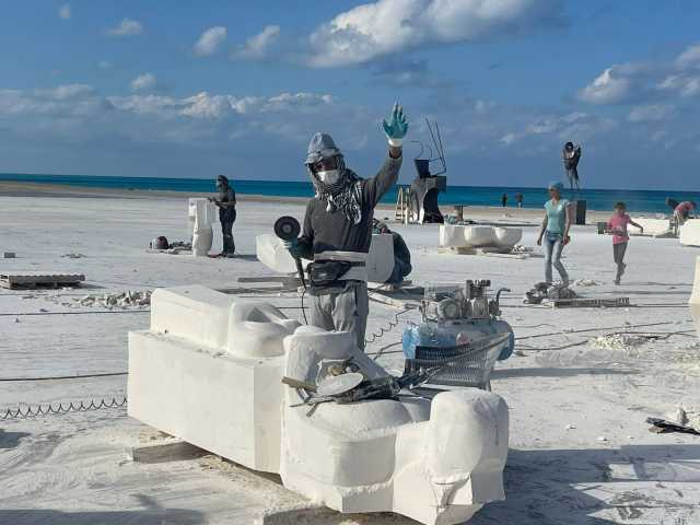 24 نحاتا عالميا يمثلون 16 دولة يواصلون الإبداع على شواطي العلمين| صور