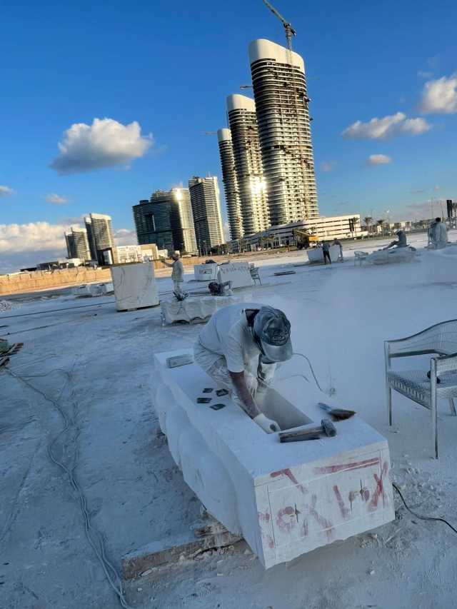 ويعمل الفنانون على مدار ساعات طويلة في مواقع العمل المفتوحة داخل مدينة العلمين الجديدة، حيث تتحول الكتل الحجرية والخامات المعاد تدويرها إلى أعمال فنية نابضة بالحياة، تعكس تنوع المدارس الفنية العالمية وتبرز الهوية الجمالية للمدينة، .