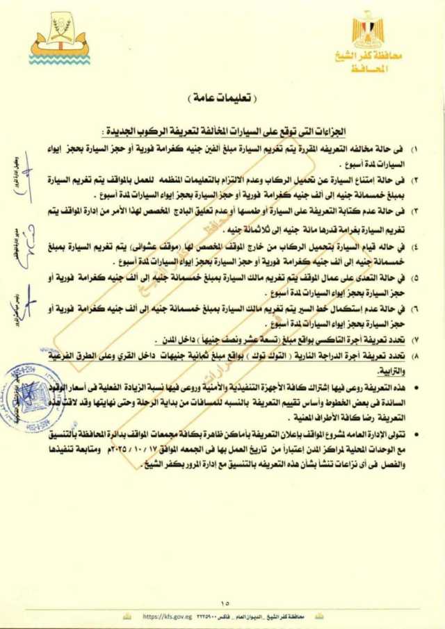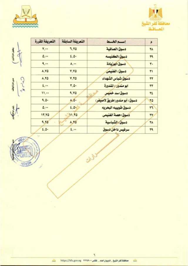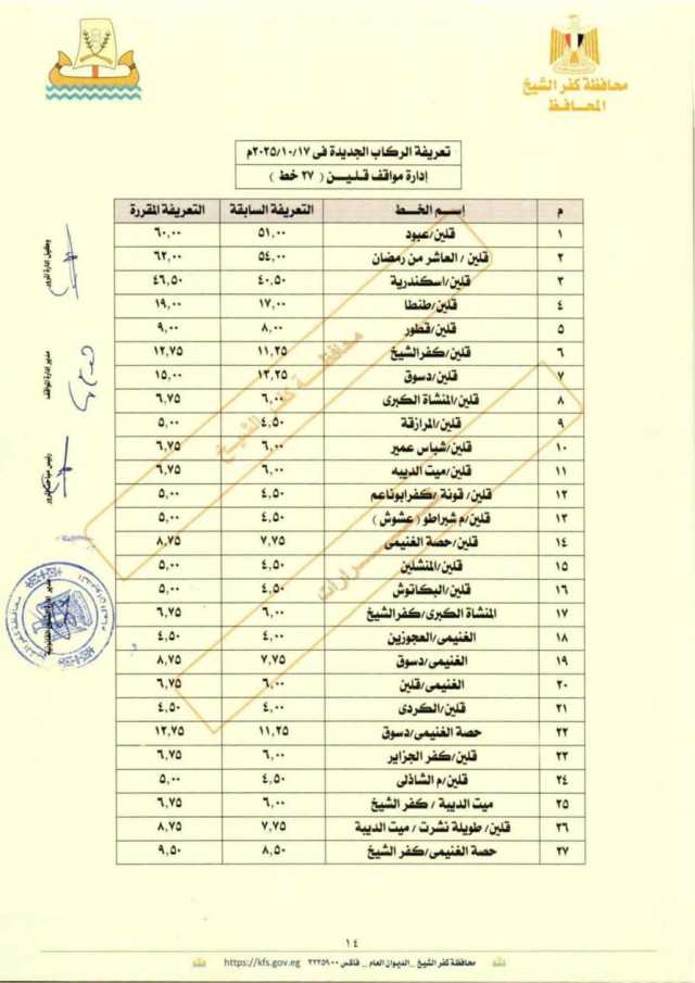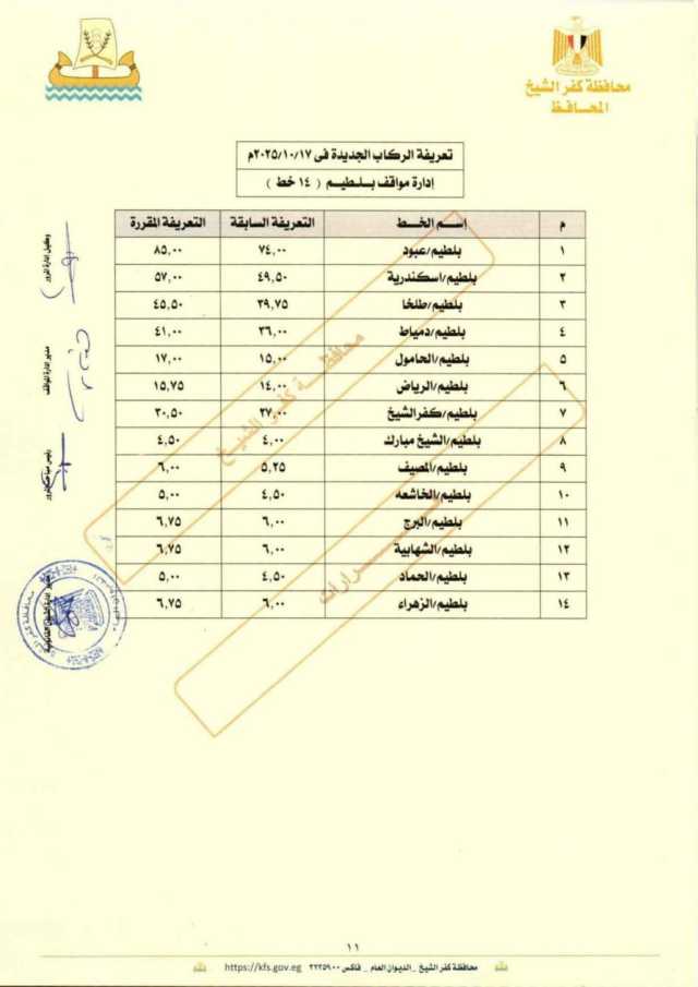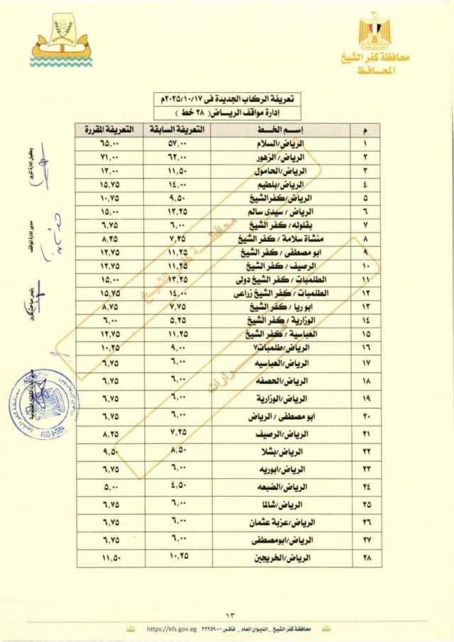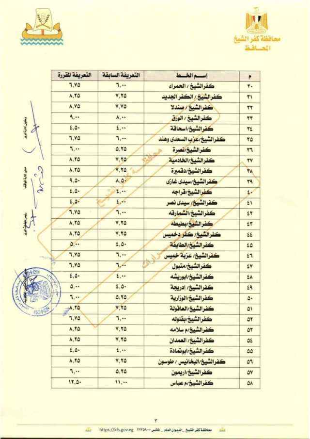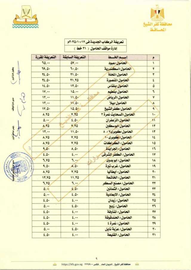 محافظ كفرالشيخ يعتمد التعريفة الجديدة لنقل الركاب ويحذر من استغلال المواطنين