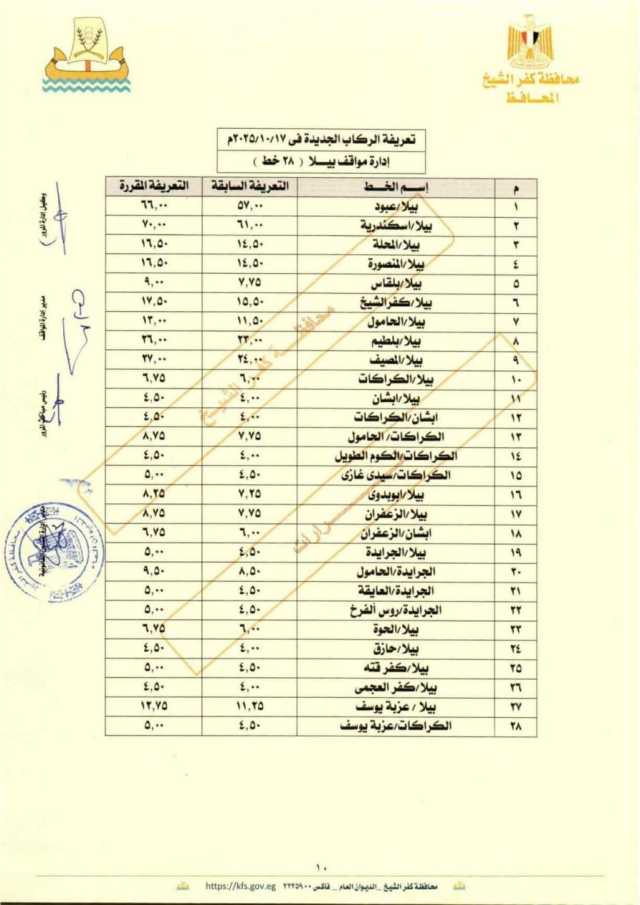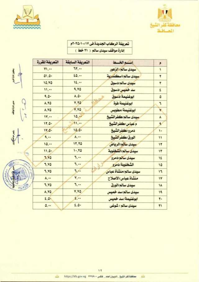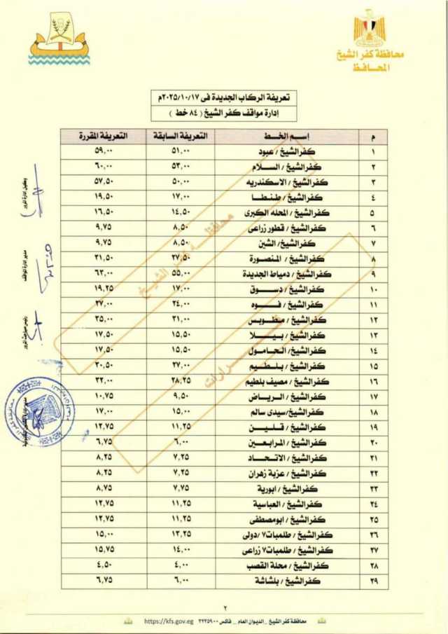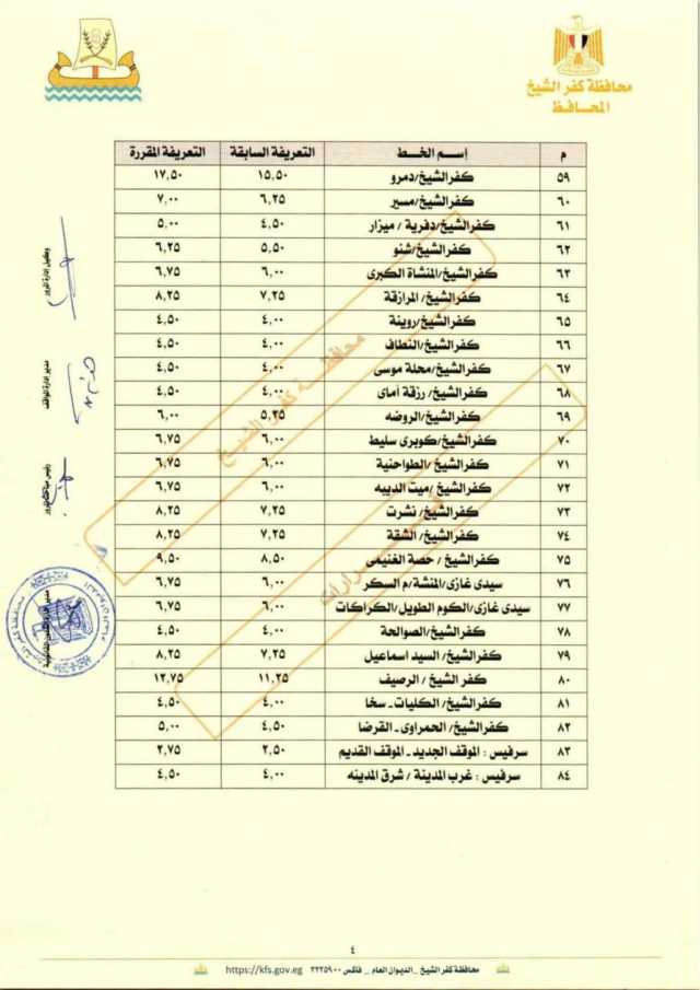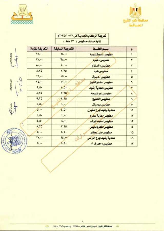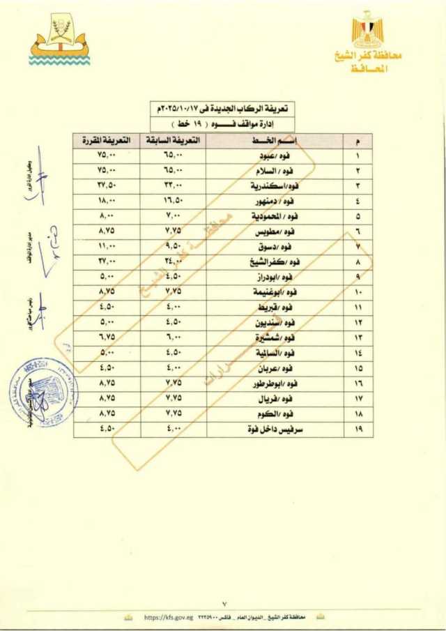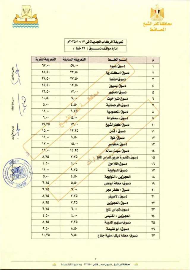 محافظ كفرالشيخ يعتمد التعريفة الجديدة لنقل الركاب ويحذر من استغلال المواطنين