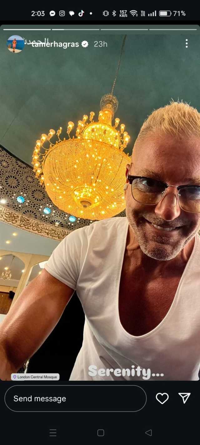 شارك الفنان تامر هجرس جمهوره صورة جديدة عبر خاصية الستوري على حسابه بموقع إنستجرام، ظهر فيها بإطلالة صباحية مريحة على شاطئ البحر، في لقطة عكست أجواء الهدوء والاستجمام.