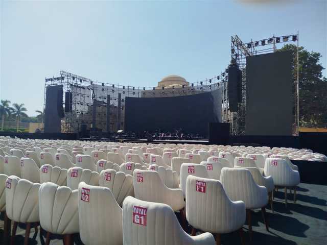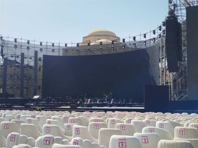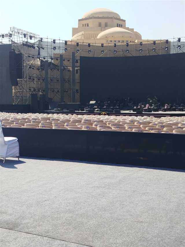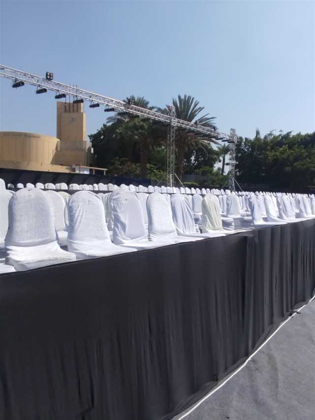 ورصدت عدسة "الوفد" صورًا حصرية من داخل مسرح النافورة أثناء التجهيزات النهائية، حيث تم الانتهاء من تجهيزات الإضاءة والصوت، وسط أجواء مهيبة تعبّر عن خصوصية الحدث.