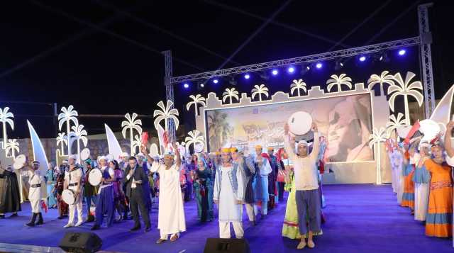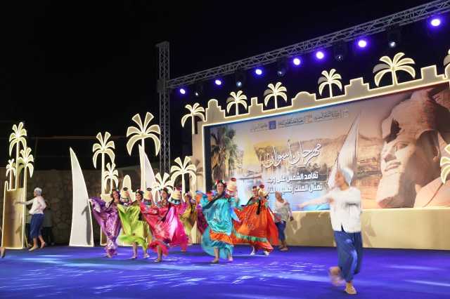 وسط حضور جماهيرى من أهالى محافظة أسوان وضيوفها من الزائرين ، وعلى أنغام الفقرات الفنية والفلكورية لفرق الفنون الشعبية .