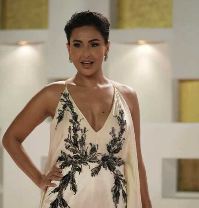 وتميز الجامبسوت بقصته الانسيابية ذات الأكتاف المكشوفة، التي أبرزت أنوثتها، واعتمدت على مكياج هادئ يبرز ملامحها الطبيعية، واكتفت بأقراط صغيرة لامعة لتكمل أناقة الإطلالة ، أما من حيث الإكسسوارات، فاختارت عقدًا راقيًا وأقراطًا ناعمة.