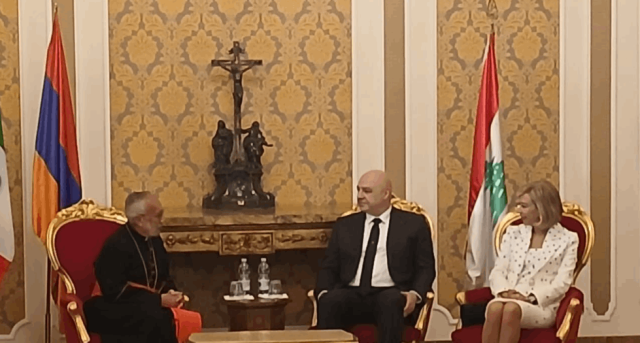 الرئيس عون زار فور وصوله، المدرسة الحبرية الأرمنية والتقى بطريرك الأرمن الكاثوليك روفائيل بدروس الحادي والعشرين ميناسيان، الذي منح رئيس الجمهورية "وسام صليب الإيمان"، وهو الأعلى في البطريركية.