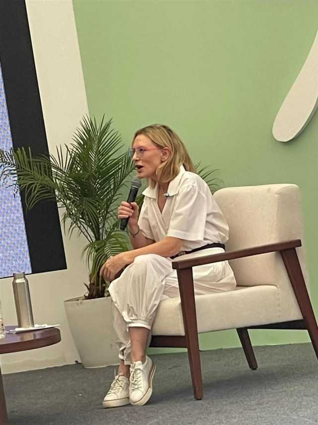 ضمن فعاليات الدورة الثامنة من مهرجان الجونة السينمائي، نظم المهرجان اليوم الأحد 19 أكتوبر جلسة حوارية مع النجمة العالمية كيت بلانشيت، أدارتها الإعلامية ريا أبي راشد.