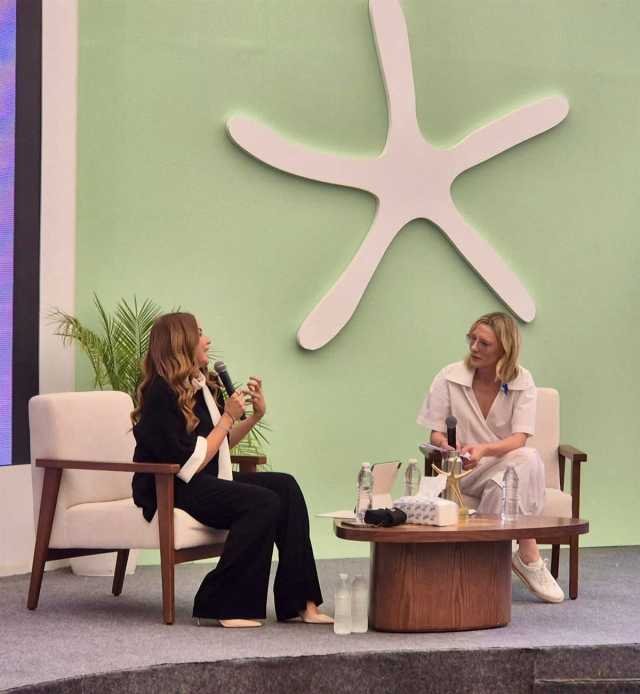 ضمن فعاليات الدورة الثامنة من مهرجان الجونة السينمائي، نظم المهرجان اليوم الأحد 19 أكتوبر جلسة حوارية مع النجمة العالمية كيت بلانشيت، أدارتها الإعلامية ريا أبي راشد.
