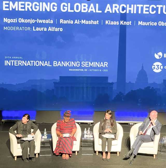 في ختام زيارتها لواشنطن للمشاركة بالاجتماعات السنوية لمجموعة البنك الدولي، شاركت الدكتورة رانيا المشاط، وزيرة التخطيط والتنمية الاقتصادية والتعاون الدولي، في جلسة نقاشية حول «البنية العالمية الناشئة»، وذلك خلال فعاليات الندوة المصرفية الدولية السنوية الأربعون لمجموعة الثلاثين بواشنطن Group of Thirty، وذلك بحضور كريستالينا جيورجييفا، مديرة صندوق النقد الدولي، وكريستين لاجارد، رئيسة البنك المركزي الأوروبي، ونجوزي أوكونجو إيويالا، المديرة العامة لمنظمة التجارة العالمية، وإيلان جولدفاجن، رئيس بنك التنمية للبلدان الأمريكية.