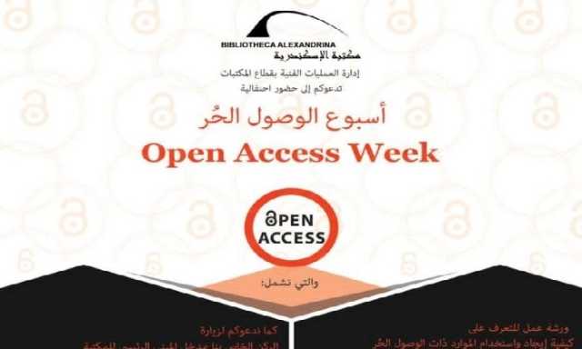 تحتفل مكتبة الإسكندرية، من خلال إدارة العمليات الفنية بقطاع المكتبات، بأسبوع الوصول الحُر للمرة الثامنة على التوالي، خلال الفترة من 22 إلى 23 أكتوبر الجاري، و ذلك تزامنًا مع احتفالات العالم بأسبوع الوصول الحُر الذي يُقام سنويًا في شهر أكتوبر، بهدف تعزيز الوعي بأهمية النشر المفتوح و إتاحة المعرفة للجميع.