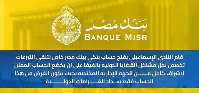 الإسماعيلي يعلن فتح حساب بنكي لتلقي التبرعات ..تفاصيل