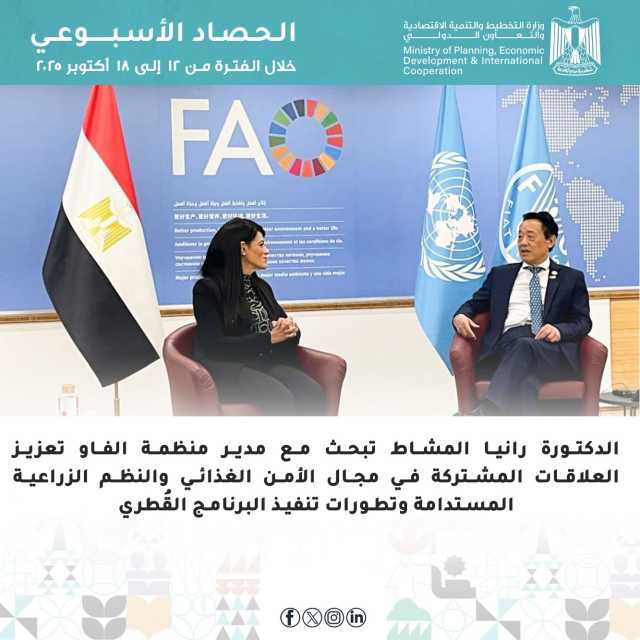 وعقب انتهاء مشاركتها بمنتدى البوابة العالمية بالعاصمة البلجيكية بروكسل، توجهت الدكتورة رانيا المشاط، للمشاركة في فعاليات المنتدى العالمي للأغذية (WFF) لعام 2025، والذي تُنظمه منظمة الأغذية والزراعة للأمم المتحدة (الفاو) في روما، حيث شهدت الزيارة توقيع الدكتورة رانيا المشاط، والدكتور شو دونيو، مدير عام (الفاو)، خطاب نوايا بشأن عضوية واستضافة مصر للأكاديمية الإقليمية للقيادة، التي أنشأتها الفاو لتكون مركزًا لتدريب القيادات وصنّاع القرار في مجالات السياسات العامة المرتبطة بتحول النظم الزراعية والغذائية بما يسهم في بناء القدرات المؤسسية ودعم صناع القرار في المنطقة لتحقيق هذا التحول بكفاءة واستقلالية.