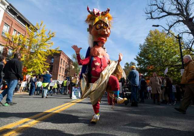 كما أُطلق بالون عملاق يصوّر ترامب وهو يرتدي حفاضًا، ورفع كثيرون لافتات تدعو إلى “إلغاء وكالة إنفاذ قوانين الهجرة والجمارك (ICE)”.