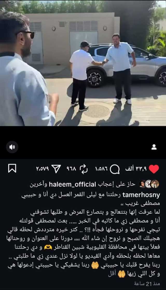 ونشر النجم المحبوب مقطع فيديو على صفحته الرسمية بموقع تبادل الصور والفيديوهات الأشهر انستجرام يوثق يه الرحلة من بدايتها والذي أظهر اصابة كل منهما في يده وعلق عليه قائلًا:"رحلتنا مع ليلى القمر العسل دي أنا و حبيبي مصطفى غريب ،، لما عرفت إنها بتتعالج و بتصارع المرض و طلبها تشوفني ..أنا و مصطفى زي ما كاتبه في الخبر ….. بعت لمصطفى قولتله تيجي نفرحها و نروحلها فجأه !!؟ .. كتر خيره مترددش لحظه قالي هجيلك الصبح و نروح إن شاء الله ،،،، دورنا على العنوان و روحنالها فعلاً بيتها في محافظة القليوبية شبين القناطر ???? و دي رحلتنا معاها لحظه بلحظه وآدي الڤيديو يا لولا نزل عندي زي ما طلبتي .. ربنا يفرح قلبك يا حبيبتي ???? ربنا يشفيكي يا حبيبتي إدعولها هي و كل اللي زيها ????".