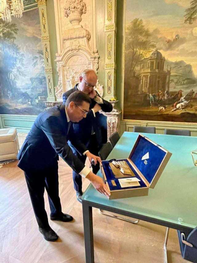 أما نص الدعوة الرسمية، فجاء مكتوبًا على لفافة من ورق البردي، الذي يُعد ابتكارًا مصريًا أصيلًا منذ آلاف السنين، ومثبتًا داخل الصندوق بطريقة فنية تُبرز قيمة الرسالة ومكانتها.
