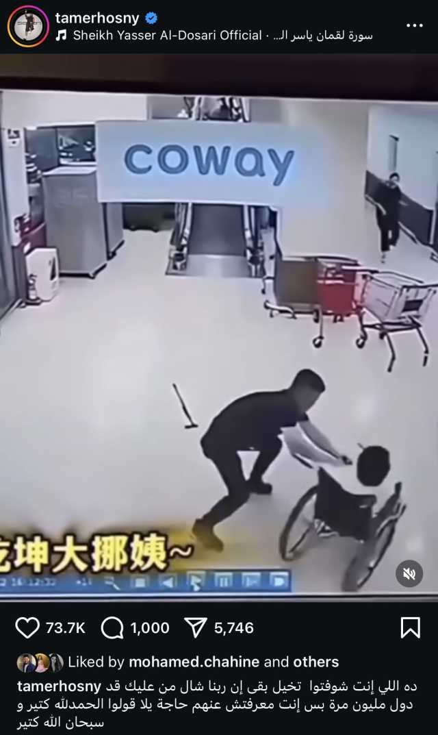 قام الفنان تامر حسني بنشر عدة مقاطع فيديو يُظهر من خلالها لقطات مؤثرة لنجاة أشخاص بفضل العناية الإلهية، عبر حسابه الشخصي بموقع إنستجرام وعلّق قائلاً: “ده اللي أنت شُفته، تخيل بقى إن ربنا شال من عليك قد دول مليون مرة بس أنت معرفتش عنهم حاجة.. يلا قولوا الحمدلله كتير وسبحان الله كتير”.