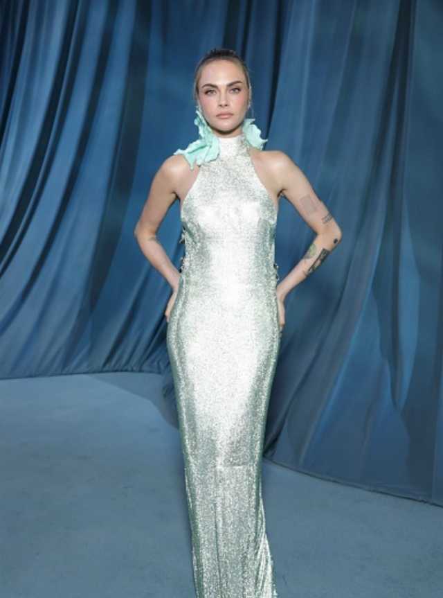 كارا ديليفين تتألق بفستان لامع وزهور خضراء في حفل Academy Museum Gala
